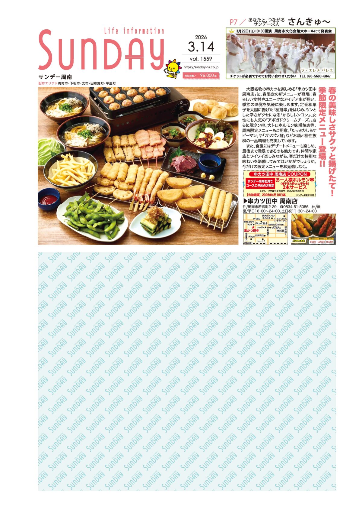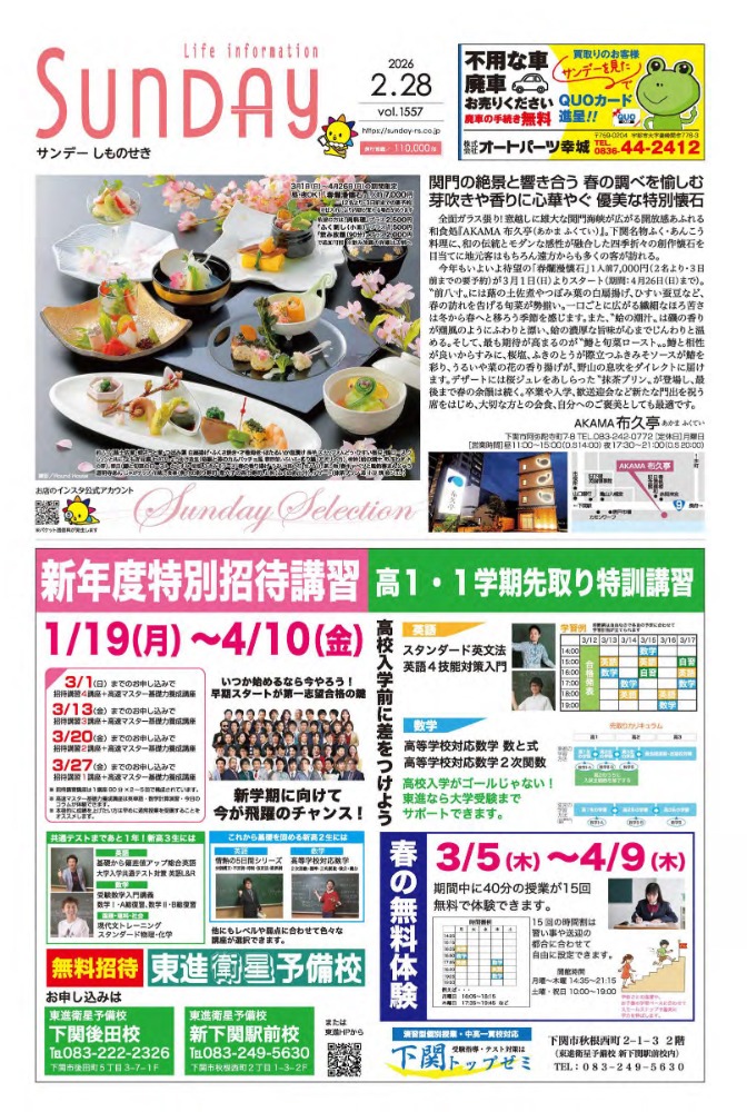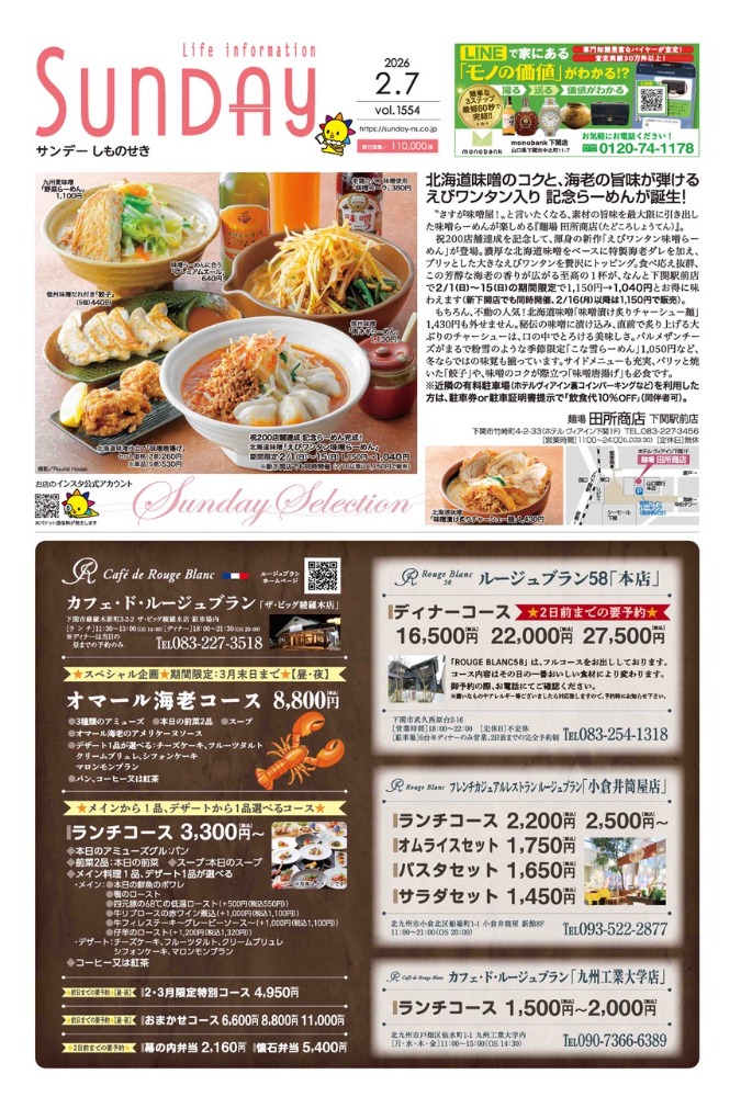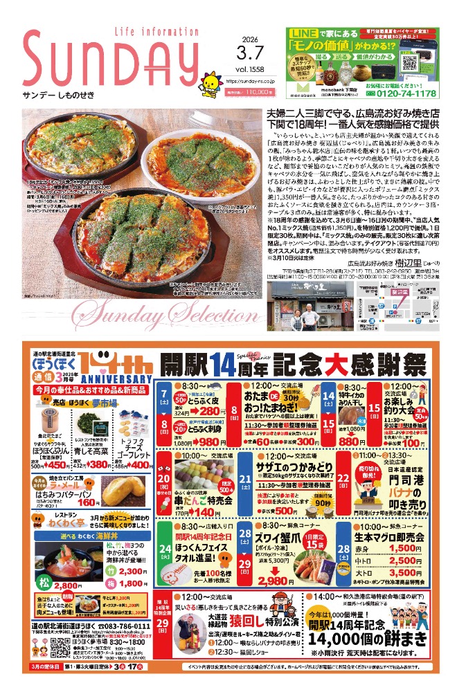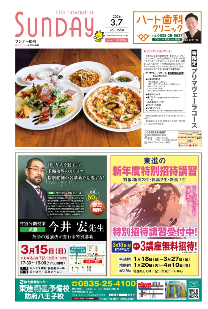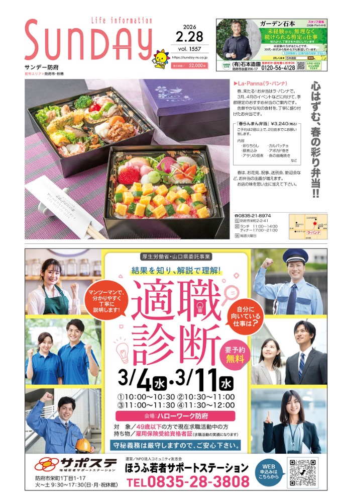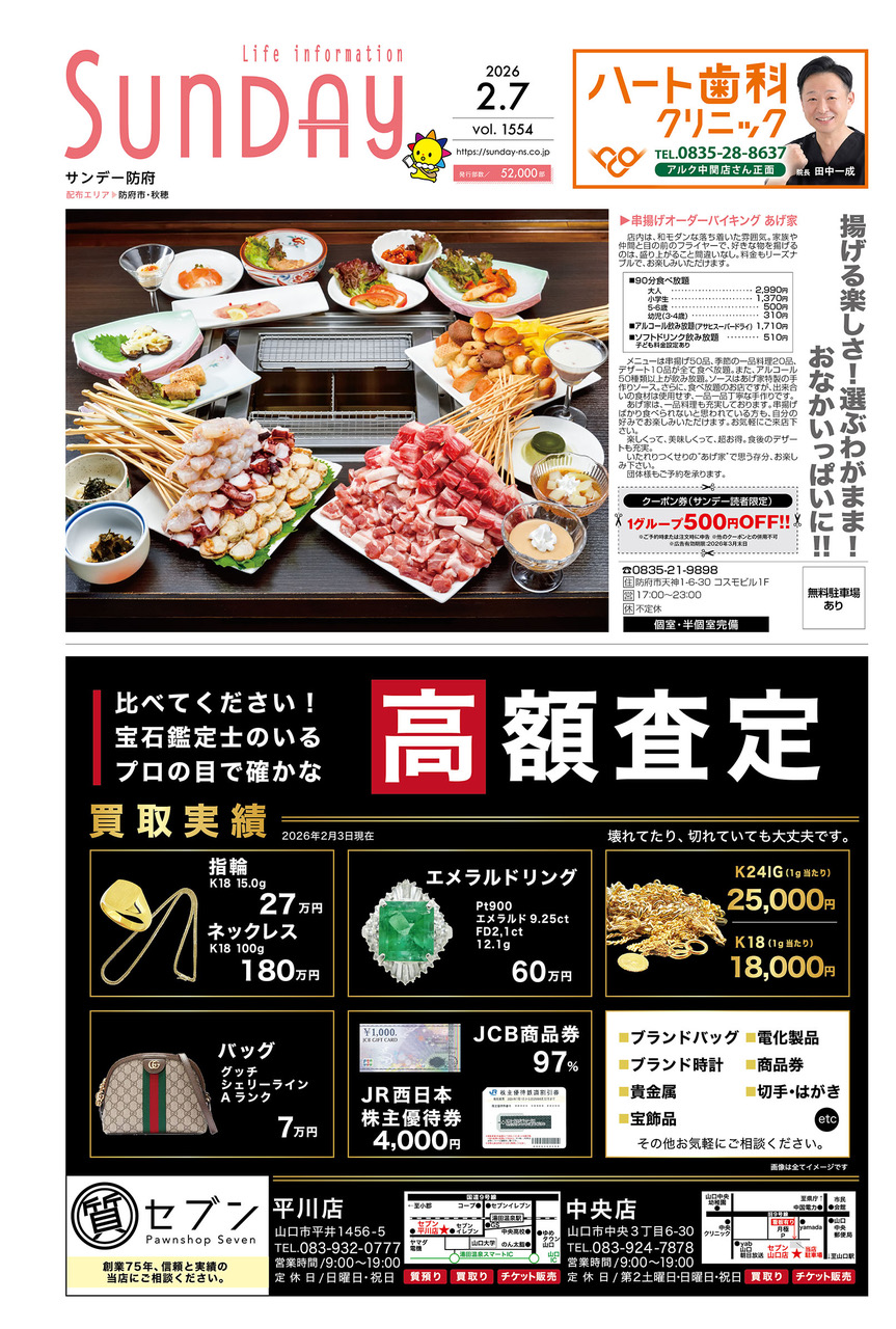 サンデー周南 … 周南市新地3-1-45 (0834)27-5506
