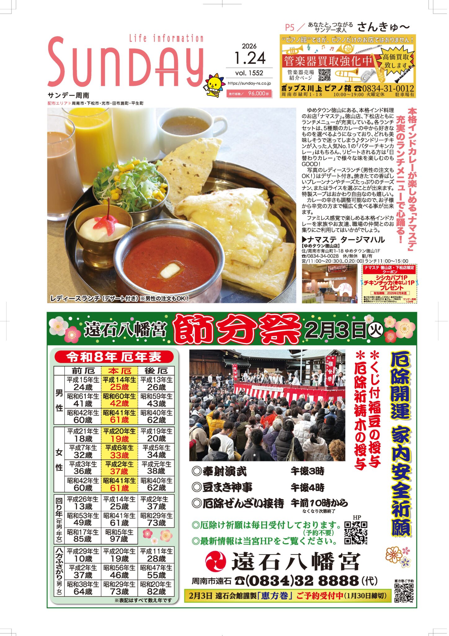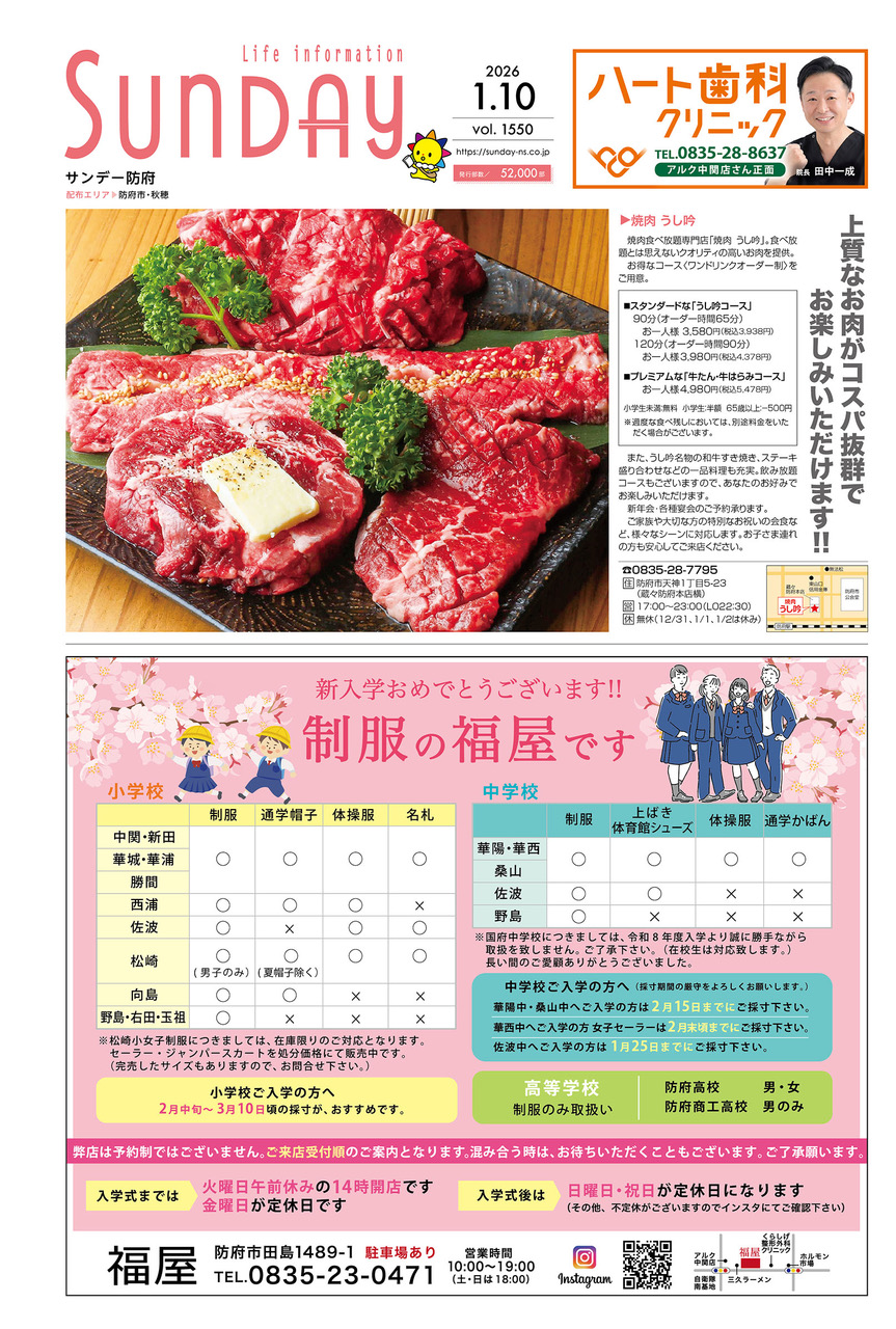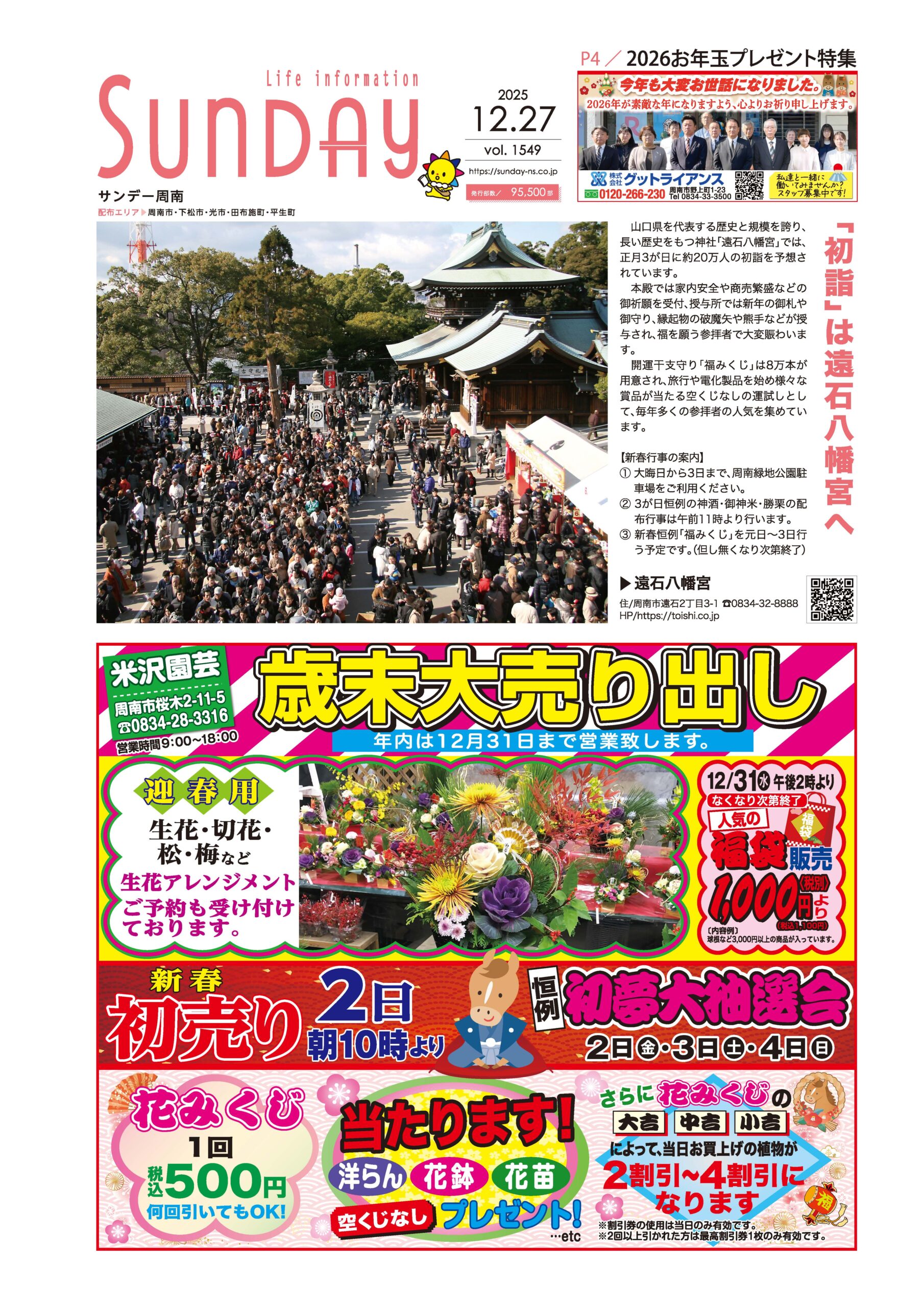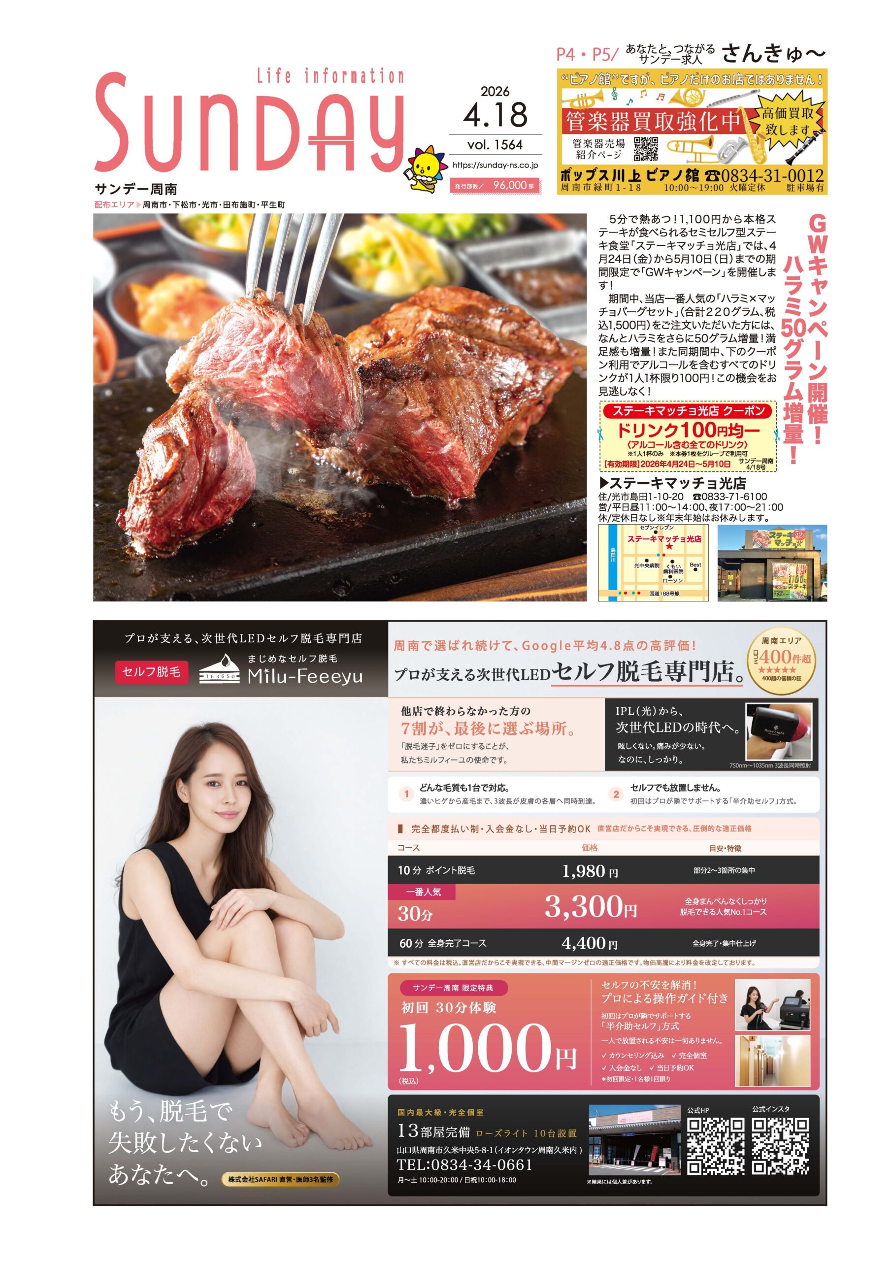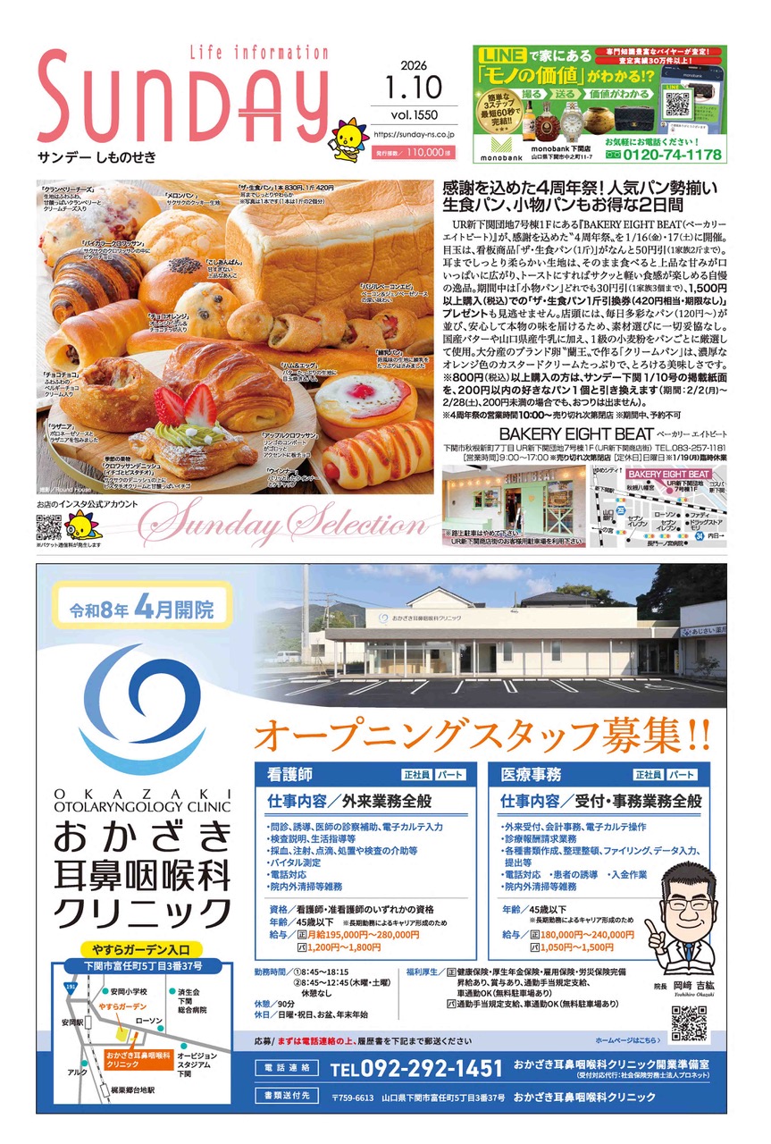 サンデー周南 … 周南市新地3-1-45 (0834)27-5506
