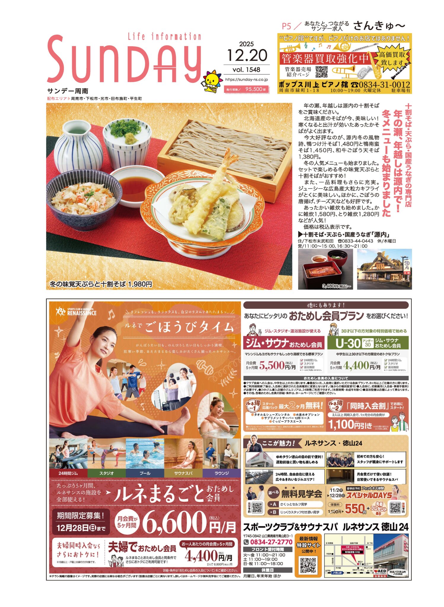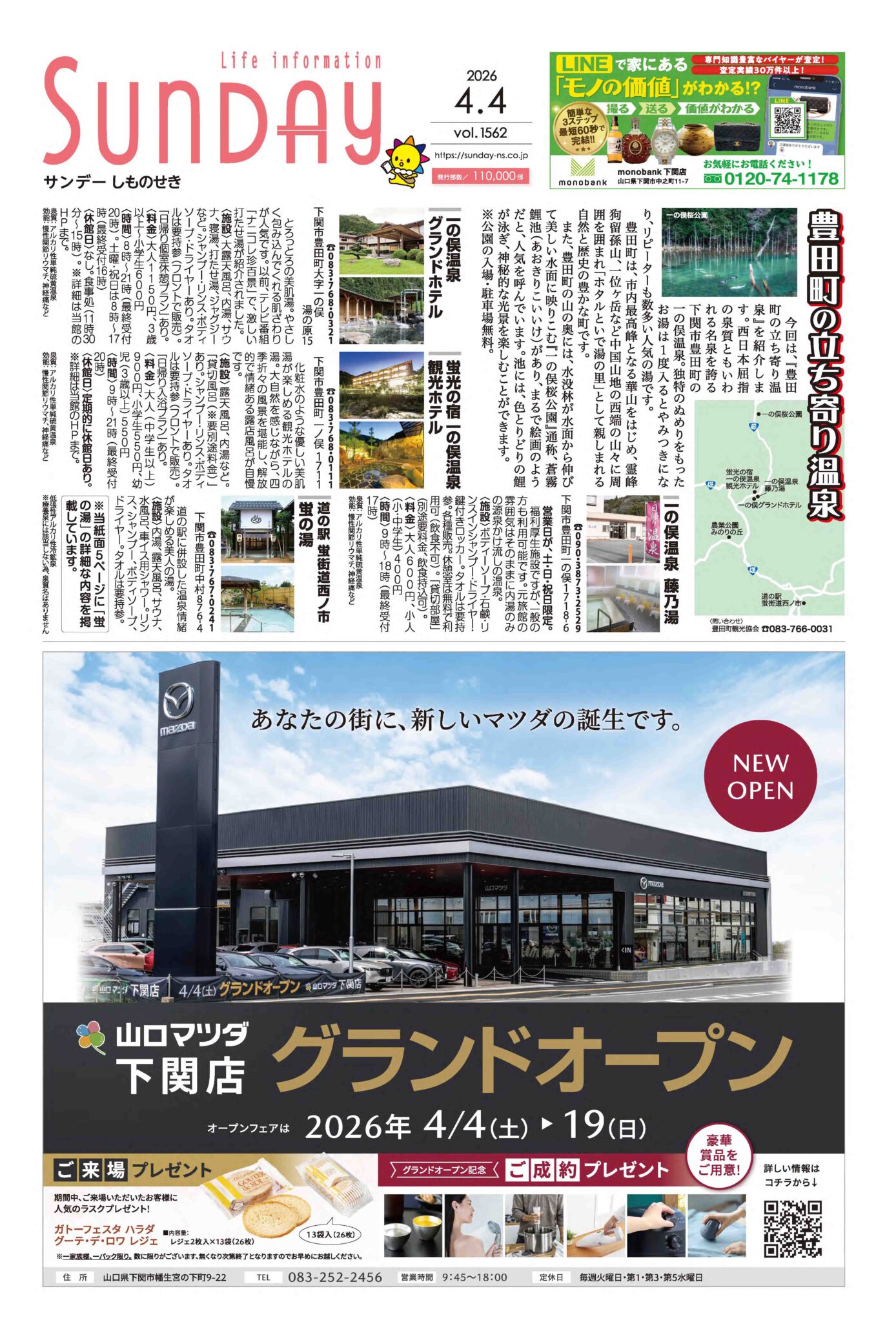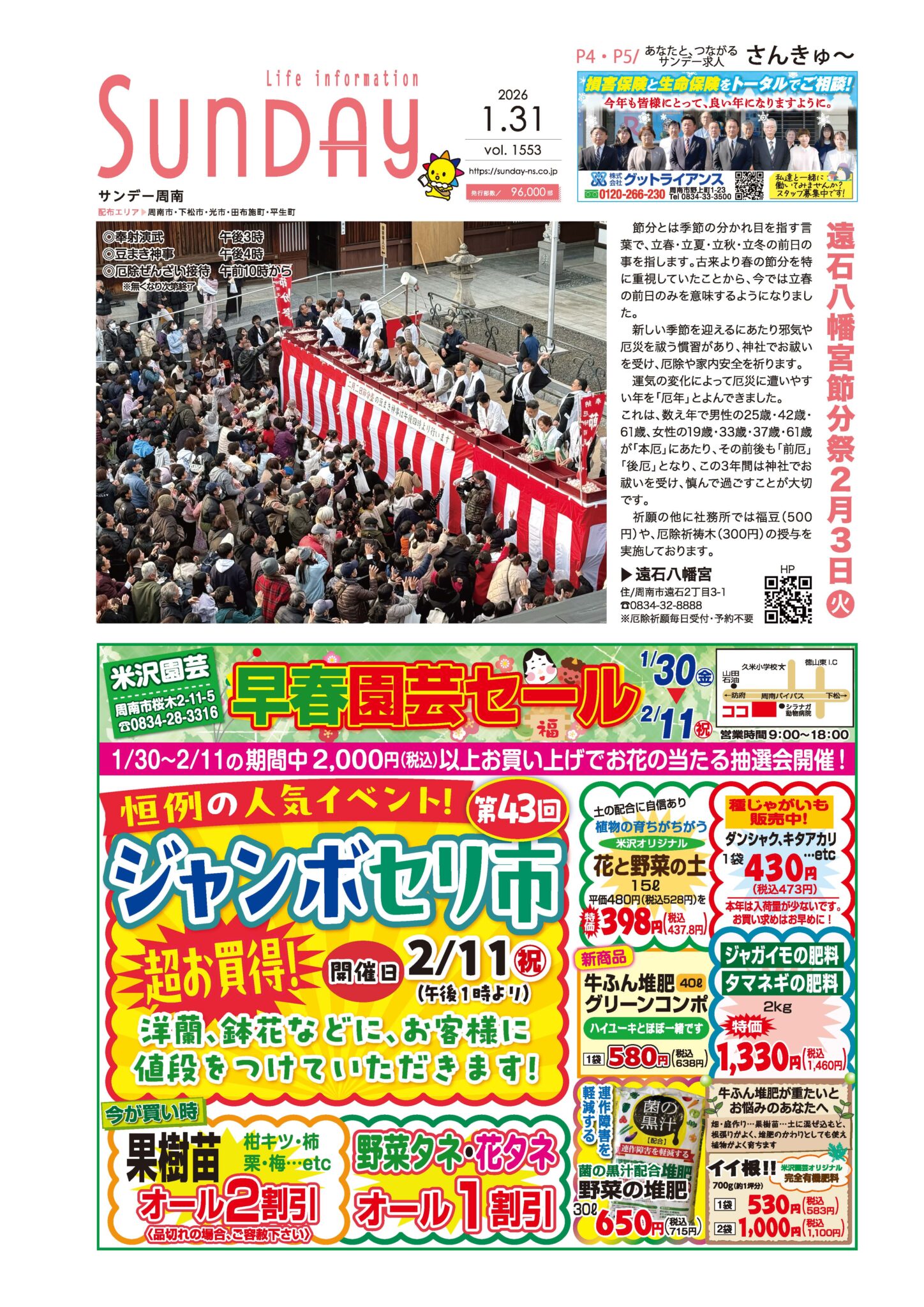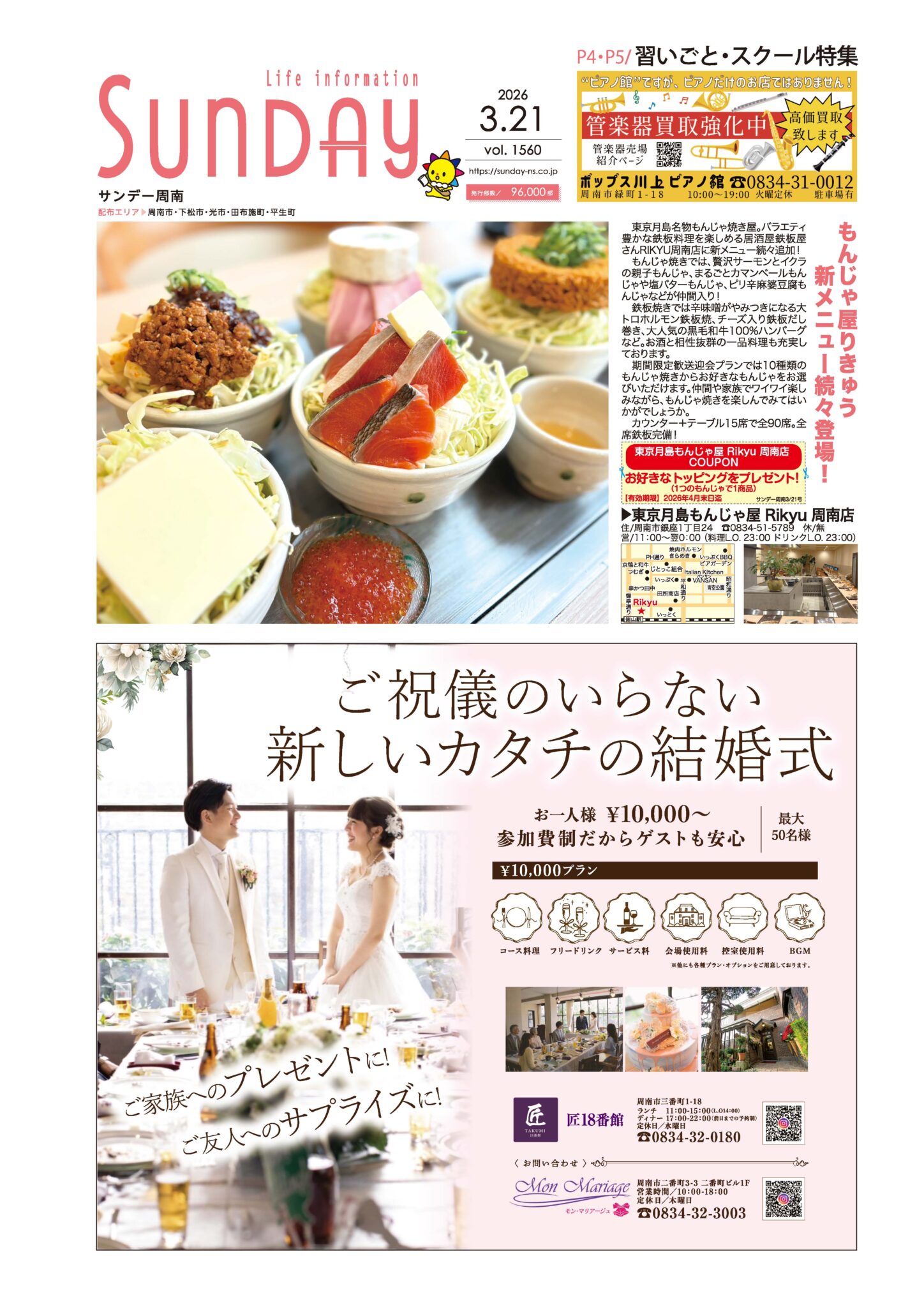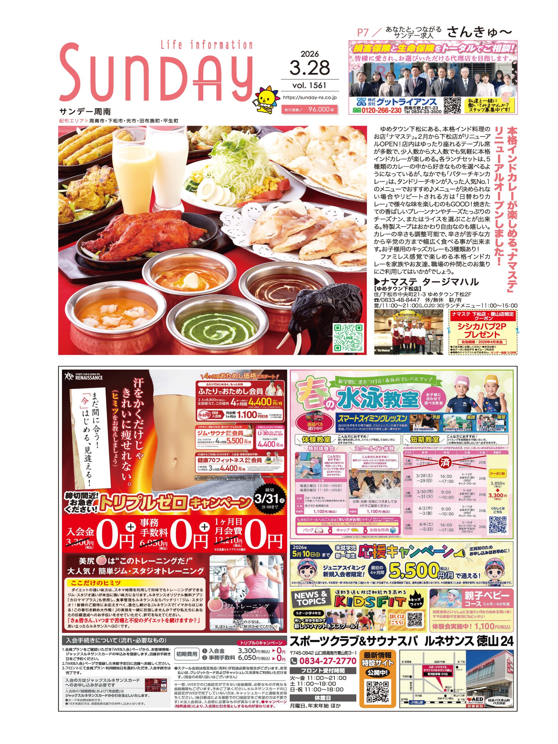 サンデー周南 … 周南市新地3-1-45 (0834)27-5506