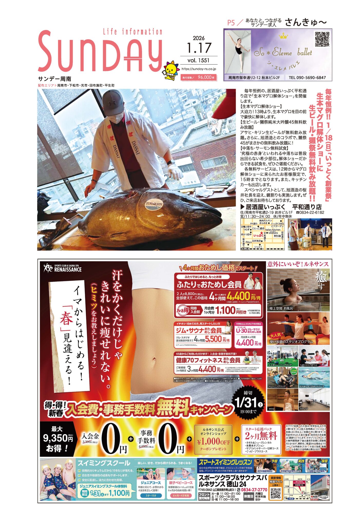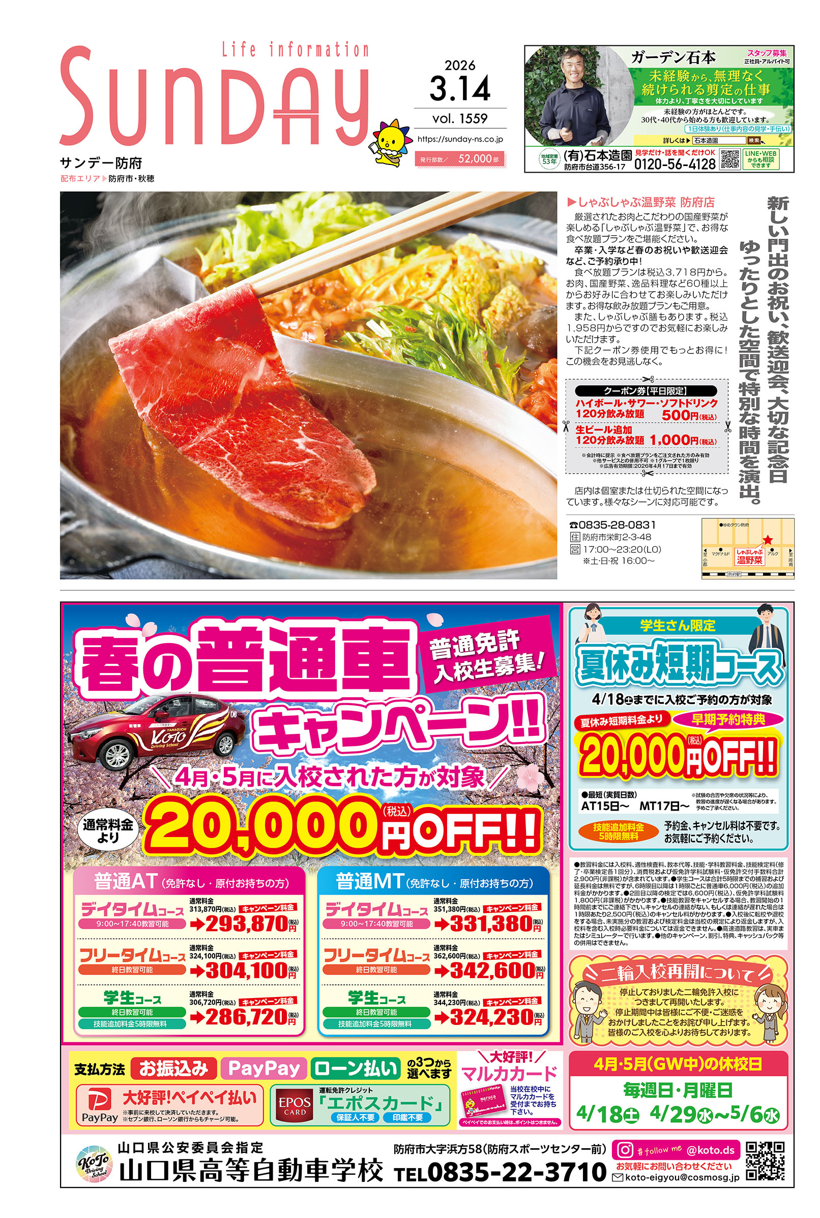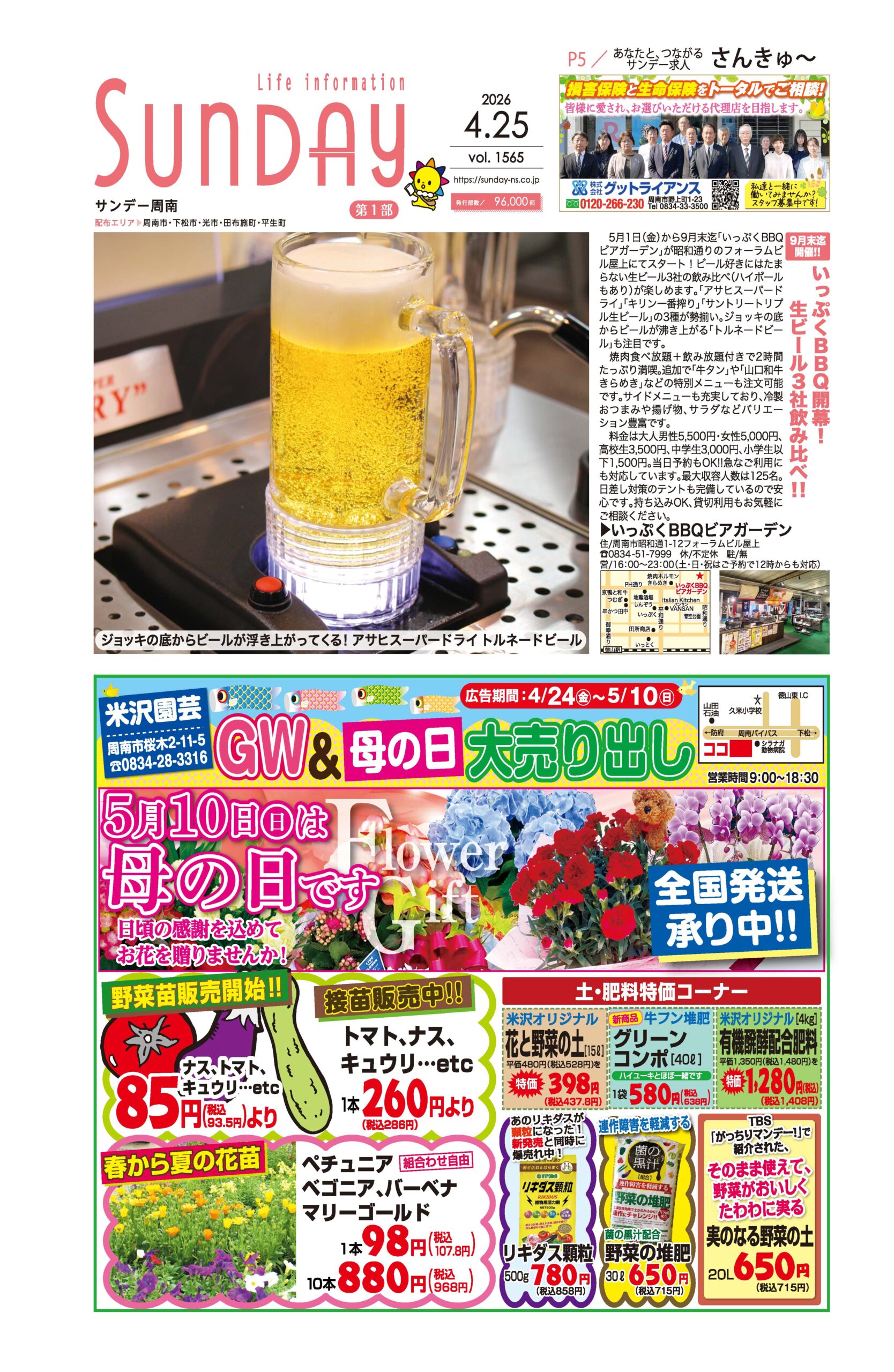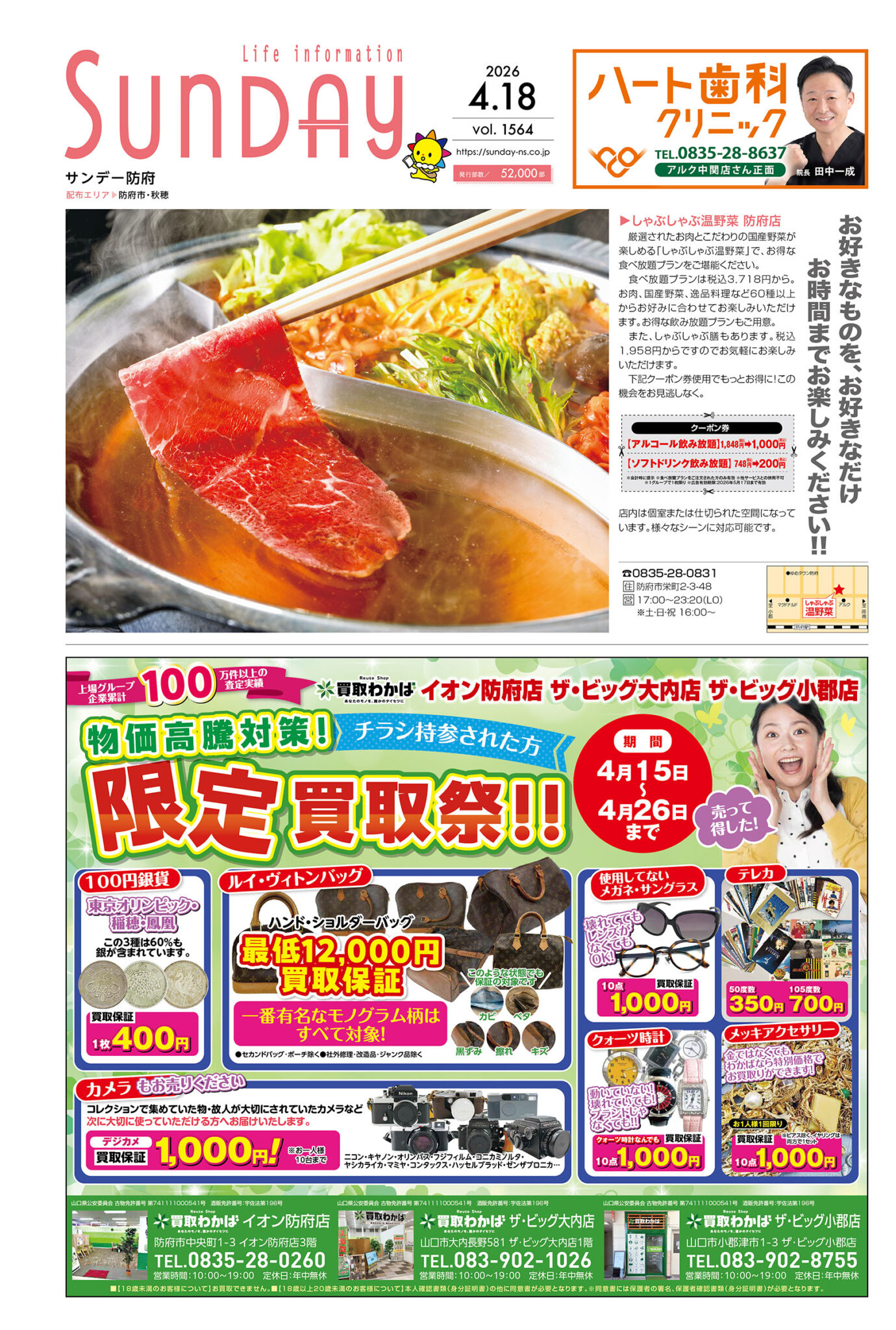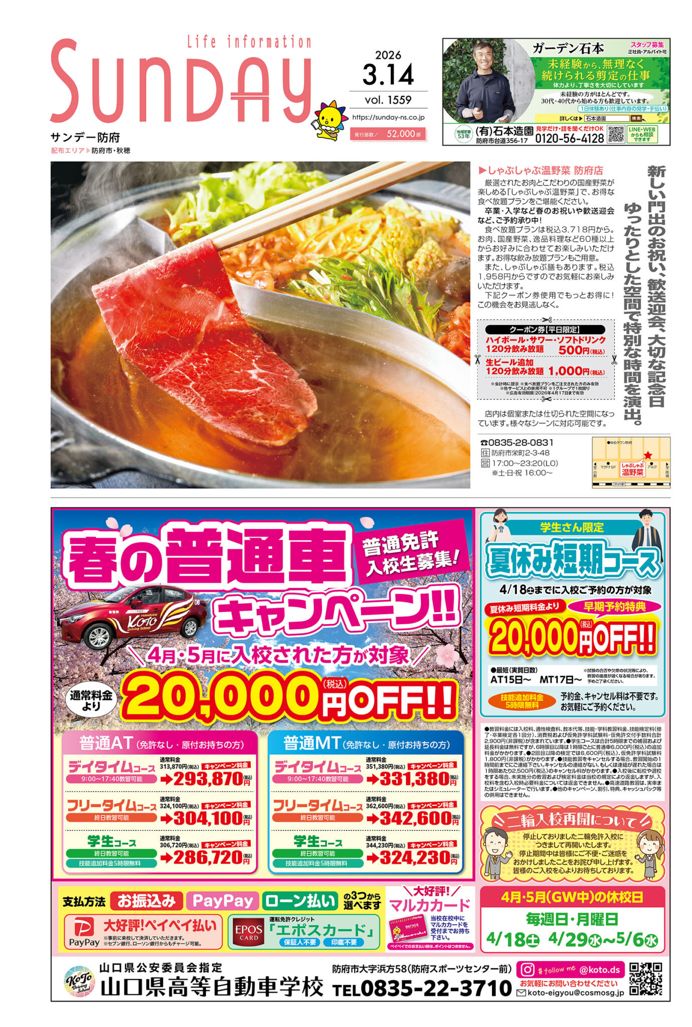 サンデー周南 … 周南市新地3-1-45 (0834)27-5506